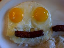 I placed an order of eggs sunny side up and sausages. When my breakfast arrived, I couldn’t help but noticed the two yokes were nice and round and evenly spaced apart. Then I noticed one of the sausages had a perfect natural curve. Then I remembered seeing the news segment on the Spontaneous Smileys. I took the picture and wanted to share it with everyone.